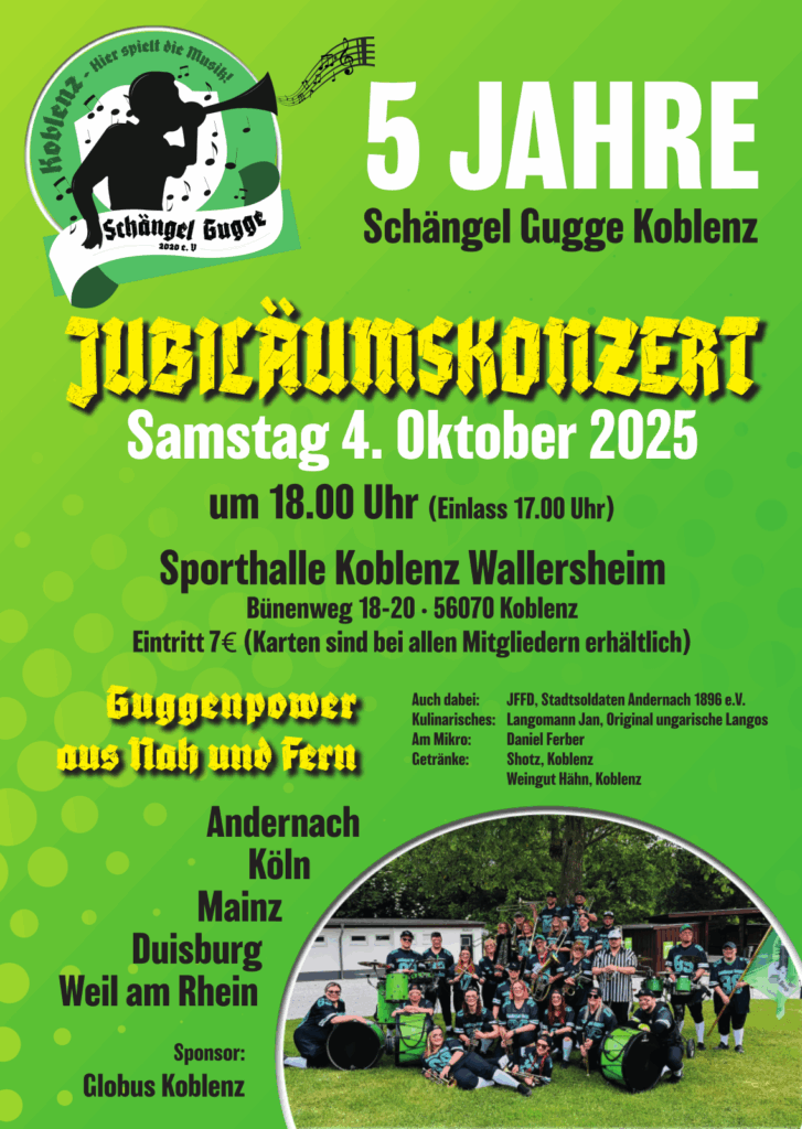 Am Samstag, den 4. Oktober 2025, steigt unser großes Jubiläumskonzert in der Sporthalle Koblenz-Wallersheim.